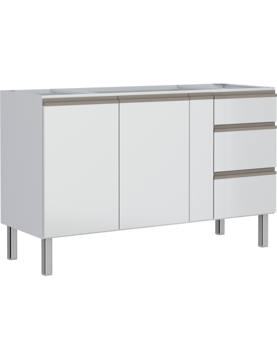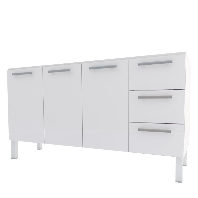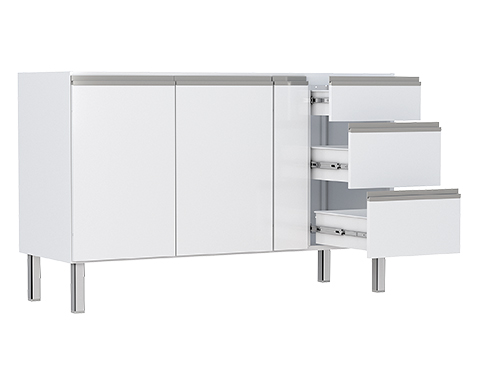 Gabinete de Cozinha em Aço Vênus Flat Branco 3 Gavetas 1,50M