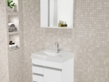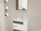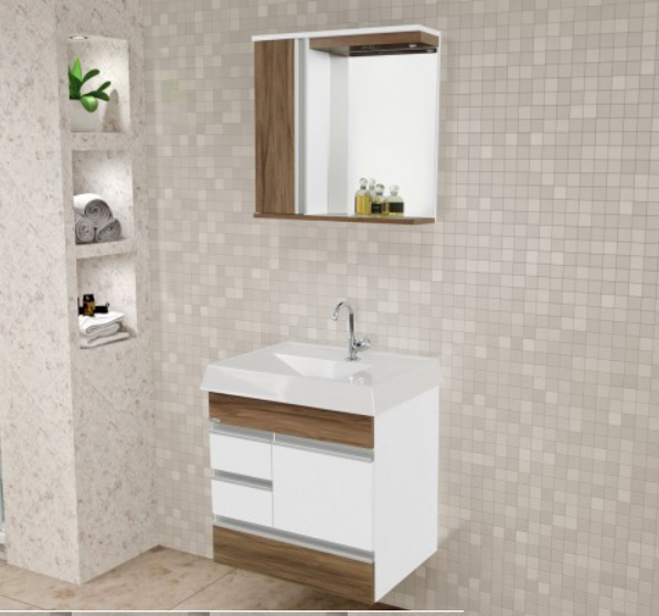 Possui puxador em alumínio. Espelheira com prateleira em vidro temperado 3mm e lâmpada de LED bivolt que ilumina o espelho uniformemente.