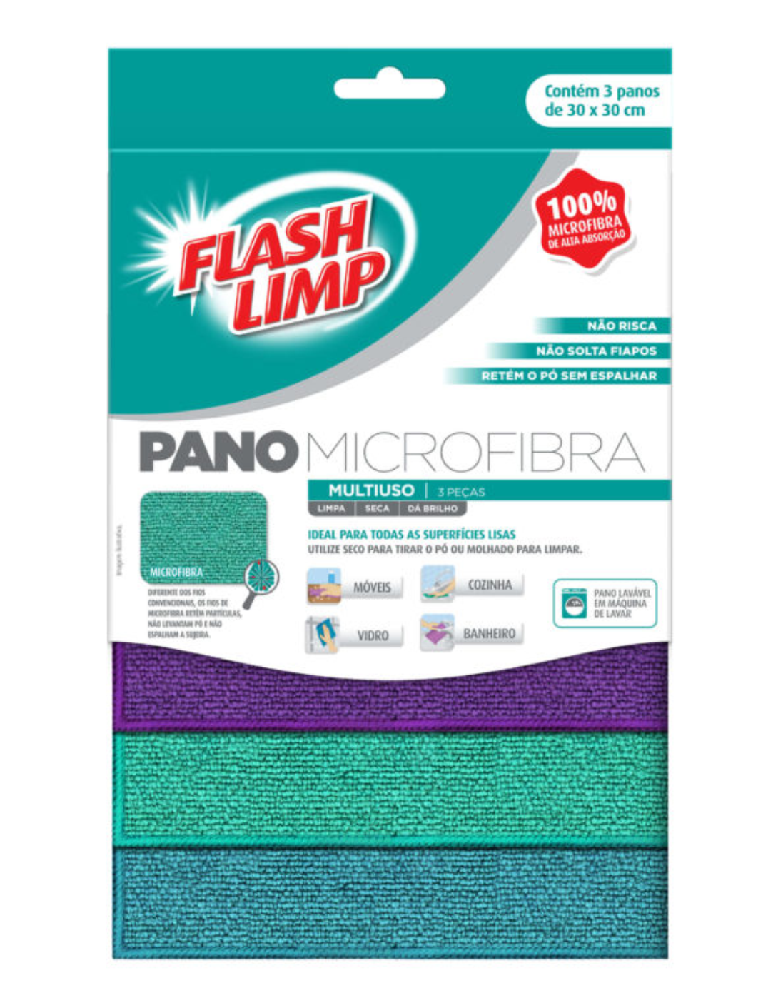 Pano Microfibra Multiuso 3 Peças - Flash Limp